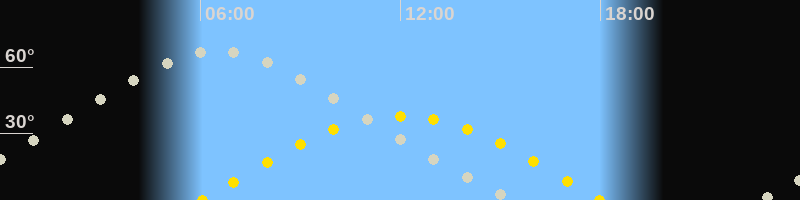| Höchster Stand (Kulmination) | 06:30 Uhr (h=67.3°) |