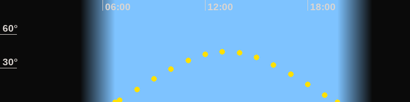 Höchster Sonnenstand (Kulmination)13:13 Uhr (h = 44.7°)