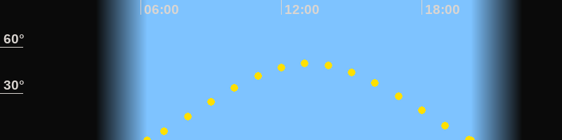 Höchster Sonnenstand (Kulmination)13:12 Uhr (h = 49.5°)