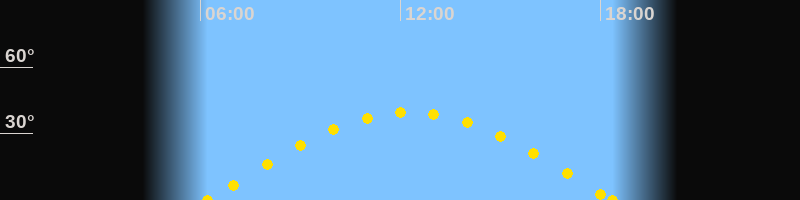 Sonnenaufgang06:12 Uhr im Osten (αAz = 89°)