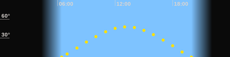 Höchster Sonnenstand (Kulmination)13:11 Uhr (h = 47.9°)