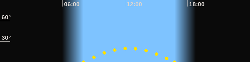 Höchster Sonnenstand (Kulmination)12:22 Uhr (h = 20°)