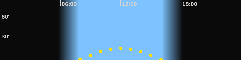 Höchster Sonnenstand (Kulmination)11:59 Uhr (h = 17.4°)