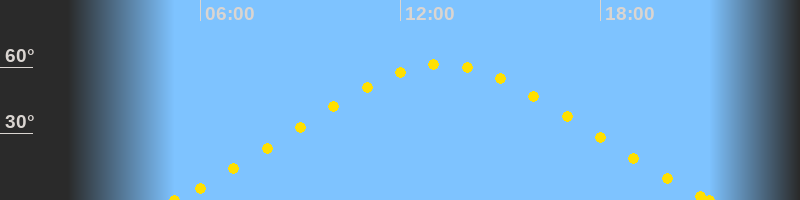 Höchster Sonnenstand (Kulmination)13:15 Uhr (h = 61.2°)