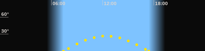 Höchster Sonnenstand (Kulmination)12:24 Uhr (h = 26.7°)