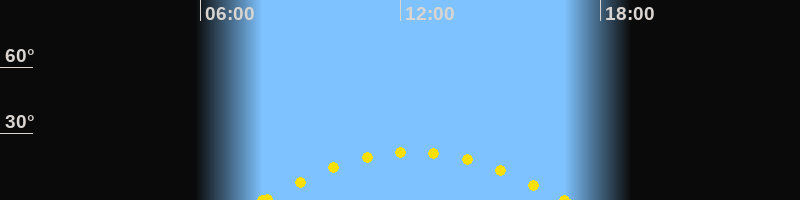 Höchster Sonnenstand (Kulmination)12:23 Uhr (h = 21.6°)