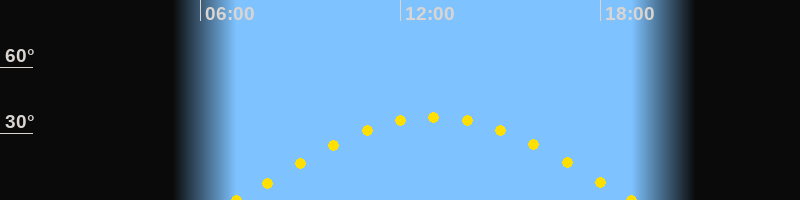 Höchster Sonnenstand (Kulmination)13:01 Uhr (h = 37.5°)