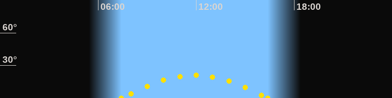 Höchster Sonnenstand (Kulmination)11:54 Uhr (h = 21°)