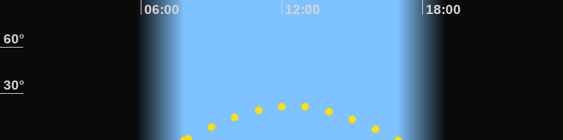 Höchster Sonnenstand (Kulmination)12:23 Uhr (h = 21.9°)