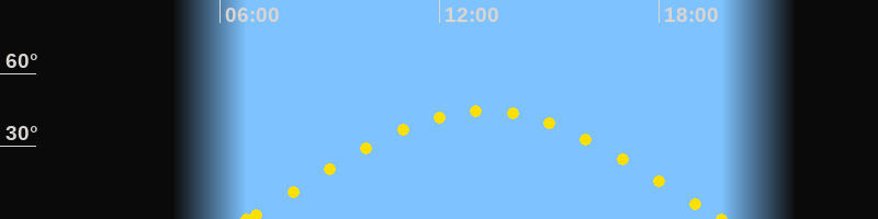 Höchster Sonnenstand (Kulmination)13:13 Uhr (h = 44.6°)