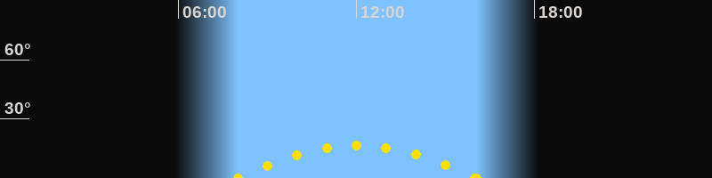 Höchster Sonnenstand (Kulmination)12:02 Uhr (h = 16.6°)