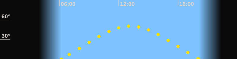 Höchster Sonnenstand (Kulmination)13:09 Uhr (h = 50.4°)