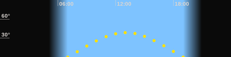 Höchster Sonnenstand (Kulmination)13:02 Uhr (h = 38.6°)