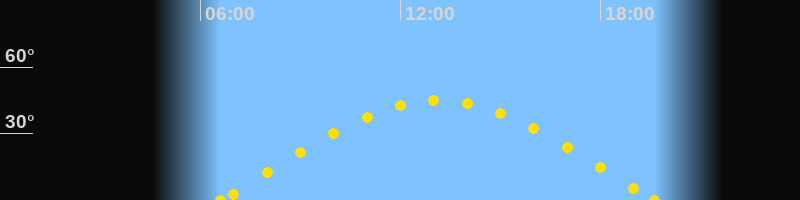 Höchster Sonnenstand (Kulmination)13:07 Uhr (h = 44.8°)