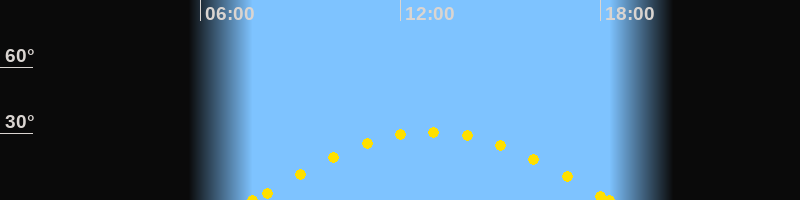 Höchster Sonnenstand (Kulmination)12:56 Uhr (h = 30.7°)
