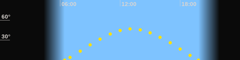 Höchster Sonnenstand (Kulmination)13:09 Uhr (h = 46.9°)