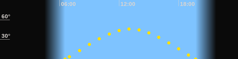 Höchster Sonnenstand (Kulmination)13:08 Uhr (h = 45.8°)