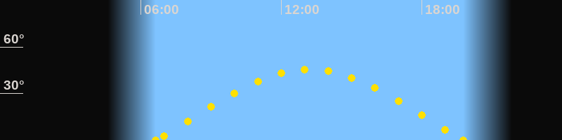 Höchster Sonnenstand (Kulmination)13:12 Uhr (h = 45.6°)
