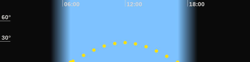 Höchster Sonnenstand (Kulmination)11:54 Uhr (h = 28.2°)