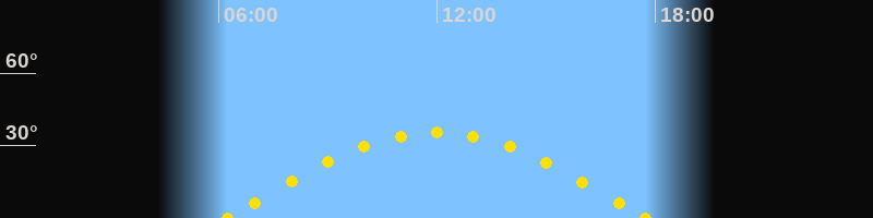 Höchster Sonnenstand (Kulmination)11:59 Uhr (h = 35.3°)