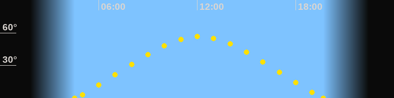 Höchster Sonnenstand (Kulmination)12:06 Uhr (h = 56.7°)