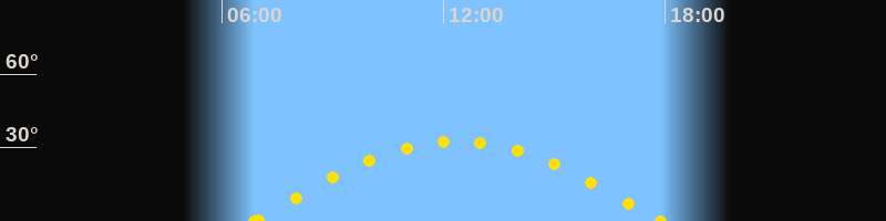 Höchster Sonnenstand (Kulmination)12:22 Uhr (h = 32.5°)