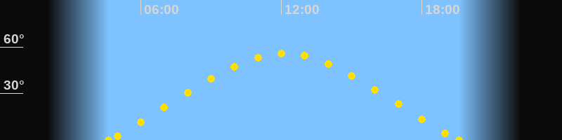 Höchster Sonnenstand (Kulmination)12:06 Uhr (h = 55.9°)