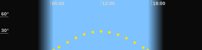 Höchster Sonnenstand (Kulmination)11:58 Uhr (h = 33.7°)