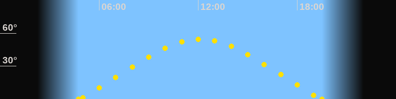 Höchster Sonnenstand (Kulmination)12:07 Uhr (h = 54.6°)