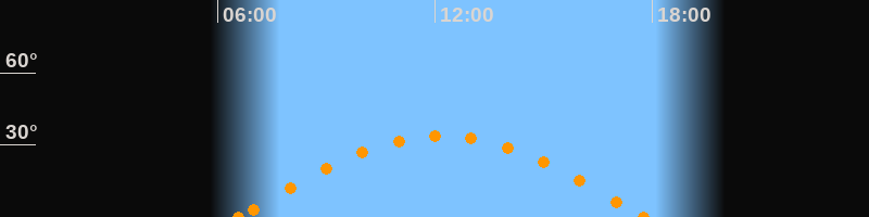Höchster Stand (Kulmination)12:09 Uhr (h = 33.9°)