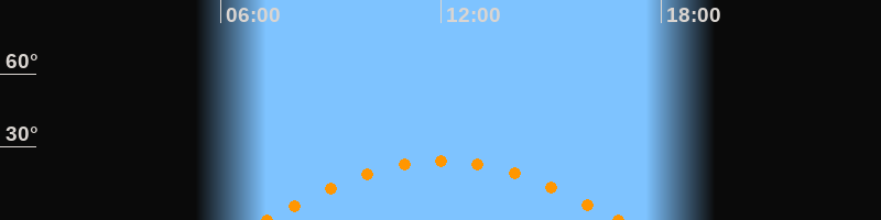Höchster Stand (Kulmination)12:04 Uhr (h = 24.5°)
