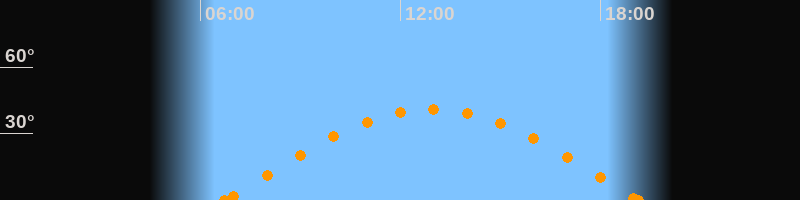 Aufgang06:44 Uhr im Osten (αAz = 86.2°)