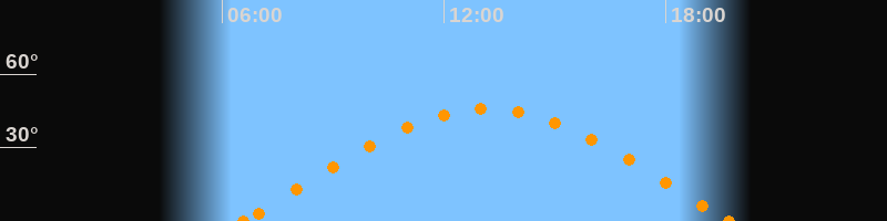 Höchster Stand (Kulmination)13:11 Uhr (h = 46°)