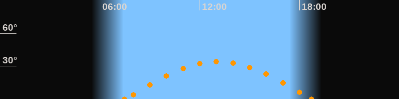 Höchster Stand (Kulmination)13:05 Uhr (h = 34°)