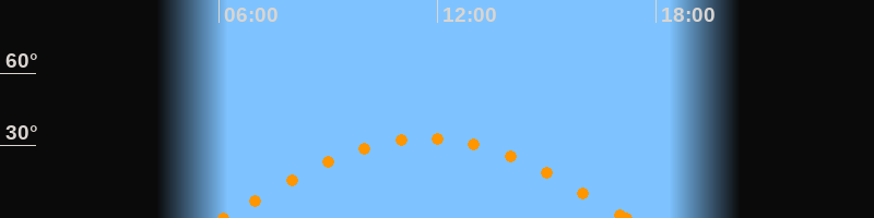 Höchster Stand (Kulmination)11:43 Uhr (h = 33.3°)