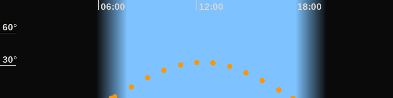 Höchster Stand (Kulmination)12:21 Uhr (h = 33°)