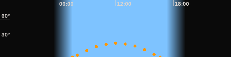 Höchster Stand (Kulmination)12:08 Uhr (h = 22.1°)