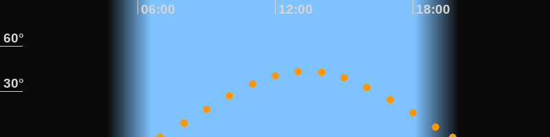 Höchster Stand (Kulmination)13:22 Uhr (h = 43.7°)
