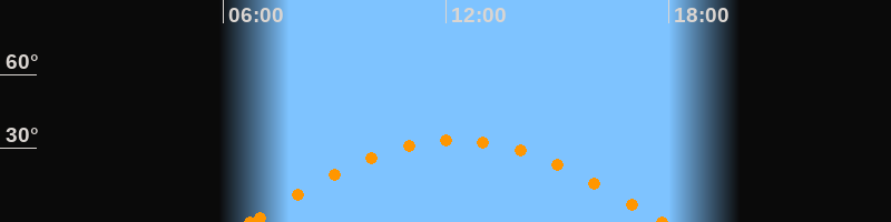 Höchster Stand (Kulmination)12:16 Uhr (h = 33.4°)