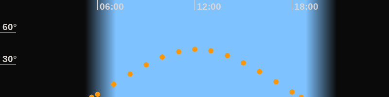 Höchster Stand (Kulmination)12:06 Uhr (h = 44.6°)