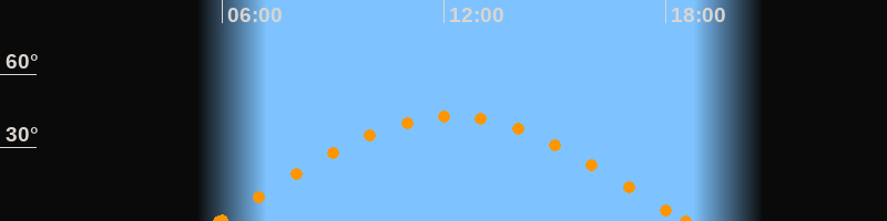 Höchster Stand (Kulmination)12:12 Uhr (h = 42.8°)