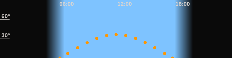 Höchster Stand (Kulmination)12:00 Uhr (h = 36.5°)