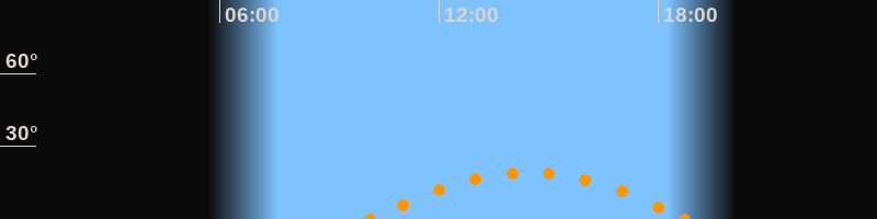Untergang18:44 Uhr im Südwesten (αAz = 237.9°)