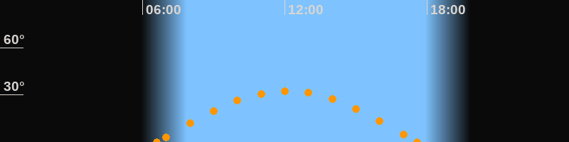 Höchster Stand (Kulmination)12:06 Uhr (h = 32.4°)