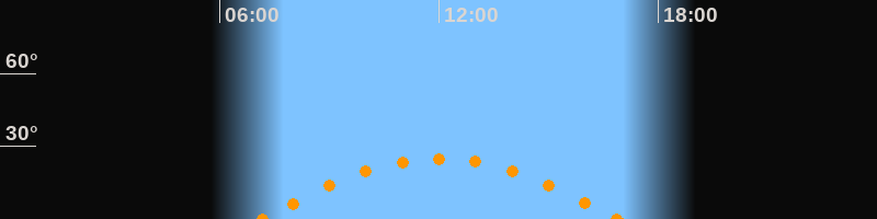Höchster Stand (Kulmination)12:00 Uhr (h = 24.9°)