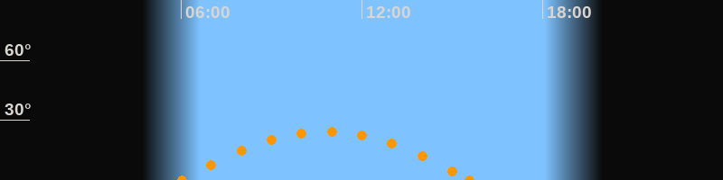 Aufgang06:00 Uhr im Südosten (αAz = 113.2°)