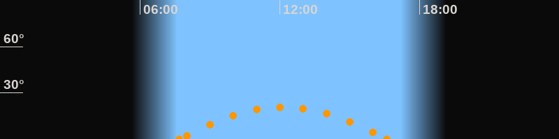 Höchster Stand (Kulmination)12:11 Uhr (h = 21.2°)