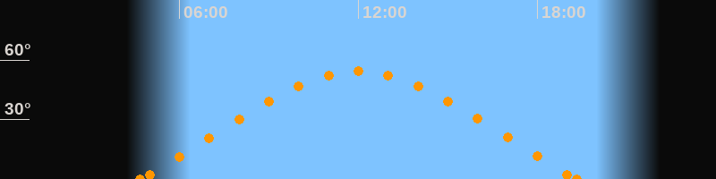 Höchster Stand (Kulmination)12:00 Uhr (h = 54.4°)
