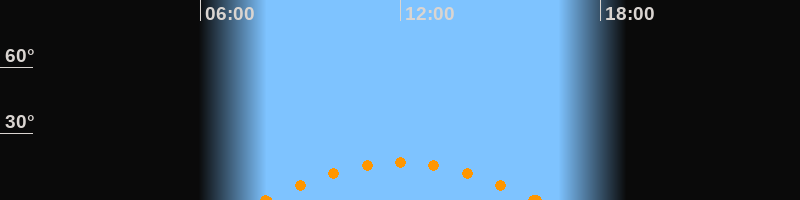 Höchster Stand (Kulmination)11:59 Uhr (h = 16.9°)