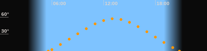 Höchster Stand (Kulmination)13:11 Uhr (h = 57.1°)